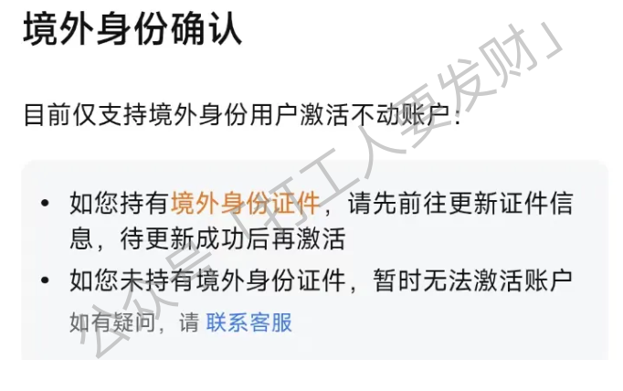 这里恶心的点是,你之前不管是用啥证件开户成功的,现在激活的统一要求就是必须有海外的身份并且是永居才可以开户。