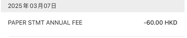 其他还没被扣费的同学也留意下,是否也有相同的坑,这个费用是邮件纸质账单的费用,一般默认我们选择的是电子账单,但是有的同学可能选择了纸质账单,尤其申请过香港信用卡的同学就很容易有这个问题。